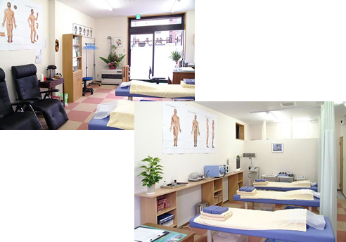 治療台がおいてある各スペースはカーテンで仕切られていますので、プライバシーが守られており安心です。